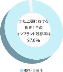 一般的に、術後一定期間を経て、埋入したインプラントの数とオッセオインテグレーション (骨結合)を獲得したインプラント数で成功率/残存率を考えています。