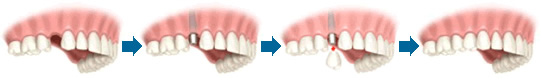 もし、歯を失ったまま放置すると、失った歯の両隣および対合歯(上下噛み合わさる歯)がその欠損空間に移動し、歯並びが悪く不自然な状態になることにより虫歯や歯周病にかかり易い環境に変化していきます。