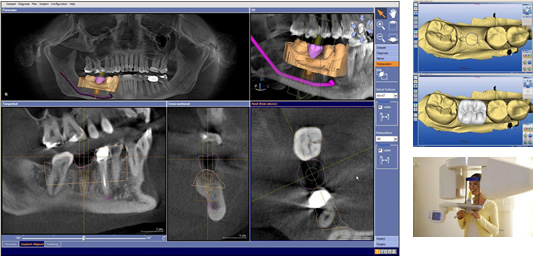 CAD/CAMシステム「セレック」と歯科用CT「ガリレオス」を用いたCEREC meets GALILEOS(インプラント治療診断・計画システム)により治療計画を立案します。